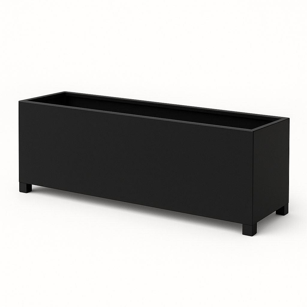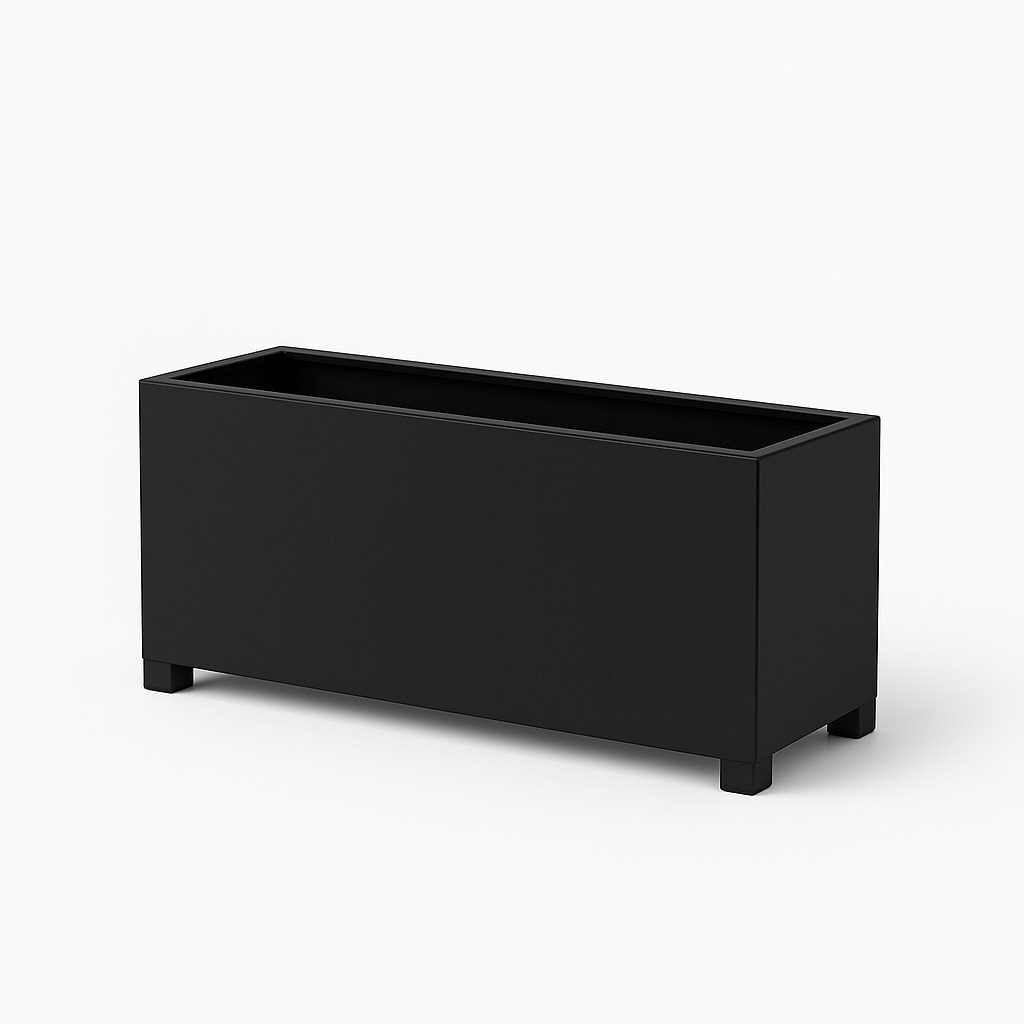 Metalne žardinjere u tri dimenzije – male (60×30×30 cm), srednje (100×40×40 cm) i velike (120×50×50 cm). Izrađene od crnog lima, plastificirane i farbane po RAL karti, idealne za unutrašnji i spoljašnji prostor.